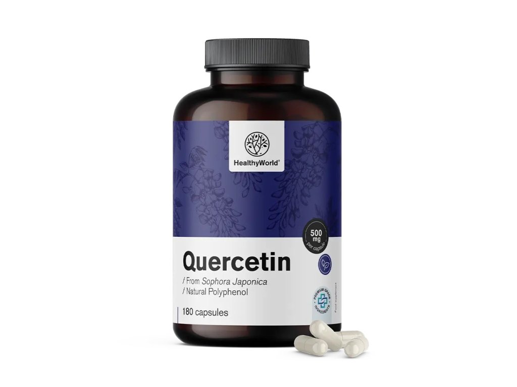 Kvercetín je silný prírodný flavonoid s antioxidačnými a protizápalovými účinkami, ktorý podporuje imunitu, bunkovú ochranu a zdravie ciev. Často sa kombinuje s vitamínom C pre ešte lepší efekt.