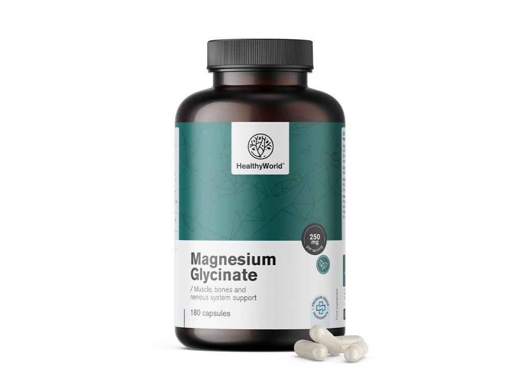 Magnézium vo forme glycinátu má vysokú vstrebateľnosť a šetrnosť k tráveniu. Podporuje nervový systém, svalovú relaxáciu, spánok a celkovú psychickú rovnováhu.