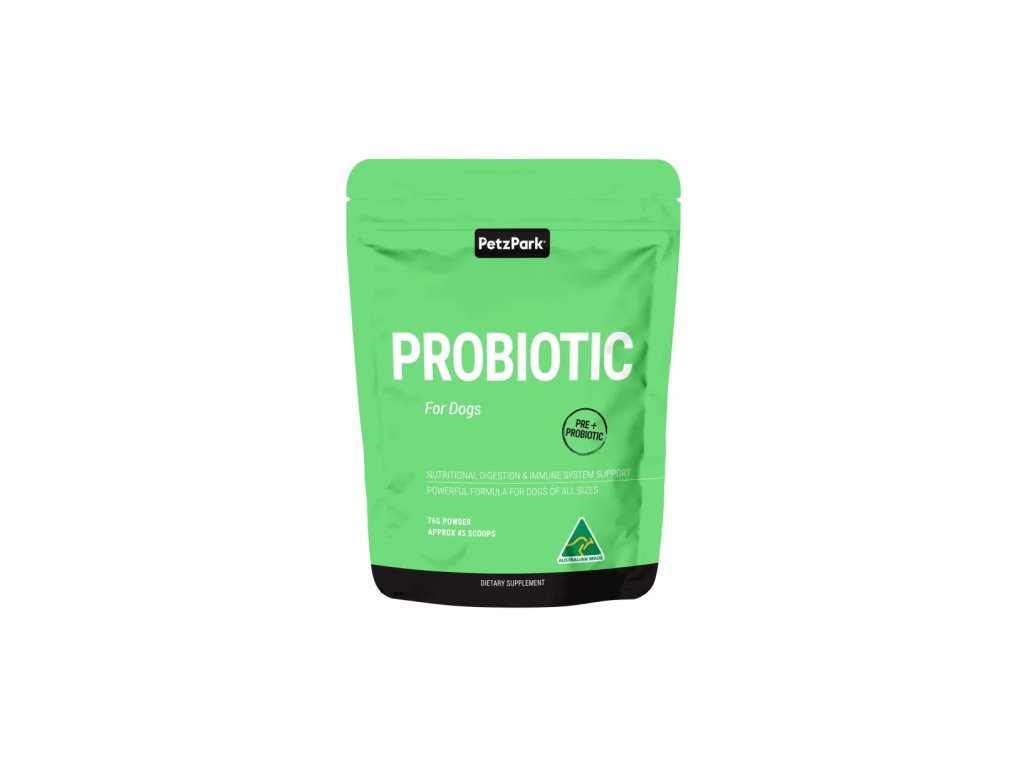 Probiotics for Dogs je veterinármi navrhnutý doplnok stravy, ktorý reguluje tráviaci systém psa, znižuje alergie, zmierňuje lízanie labiek a pomáha pri rôznych tráviacich problémoch. Tento zábavný práškový doplnok je ľahko podávateľný a možno ho jednoducho posypať na obľúbenú stravu vášho psa. Je bez obilnín, vhodný pre psy všetkých vekových kategórií, veľkostí a plemien.